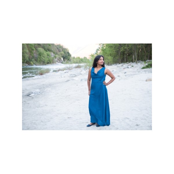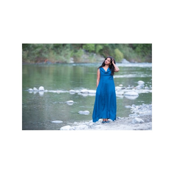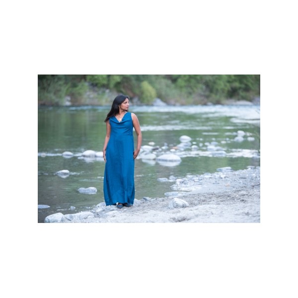 Un abito lungo è sempre sinonimo di eleganza. Questo capo, realizzato in viscosa, cade largo e leggero, un po a palloncino, l' ideale per chi non ama evidenziare troppo le forme. E' senza maniche, ampio collo e tasche laterali. Disponibile su richiestain base a disponibilità di magazzino, in diversi colori tinta unita. Abito molto adatto a cerimonie.